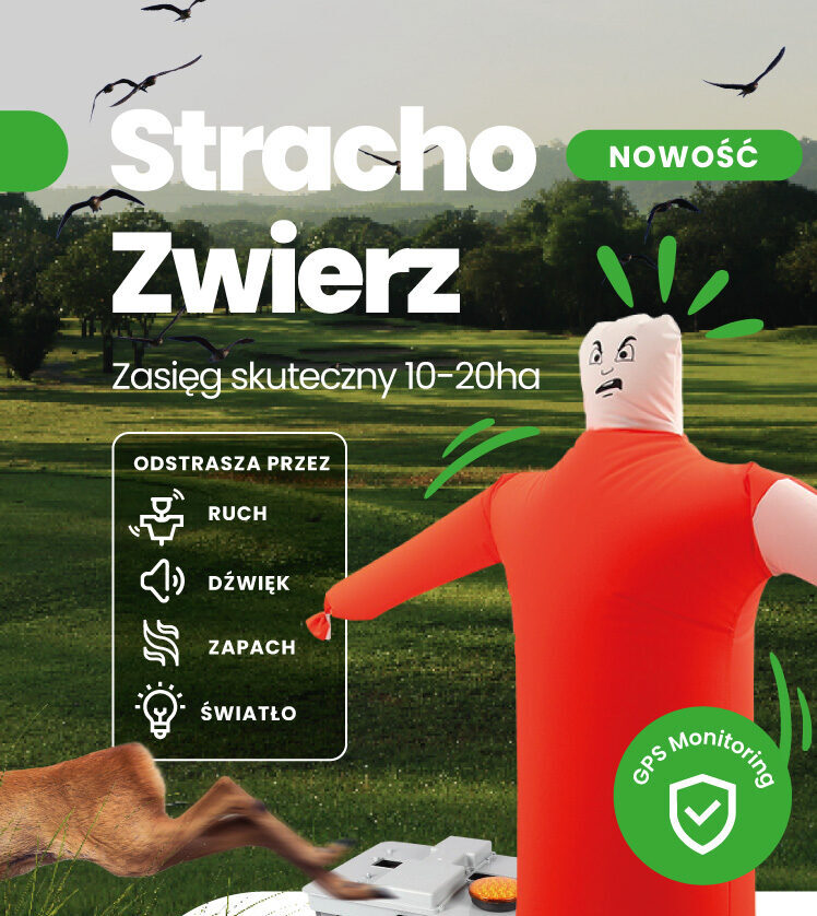 To rozwiązanie jest idealne dla rolników, sadowników i właścicieli gruntów. Urządzenie emituje dźwięki i wykorzystuje ruchome elementy. Dodatkowo używa mocnych świateł, które skutecznie odstraszają zwierzynę.