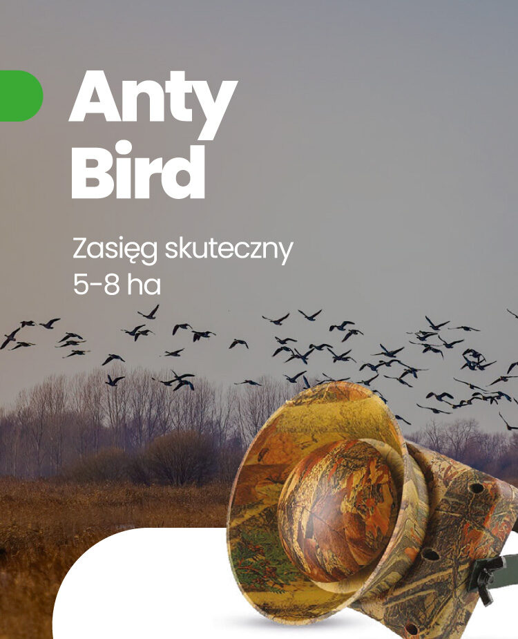 AntyBird to profesjonalne urządzenie do odstraszania ptaków, idealne do pól uprawnych i gospodarstw rolnych. Opracowany na bazie wieloletnich doświadczeń, skutecznie zabezpiecza przed szkodami wyrządzanymi przez ptactwo. Dostępny w wersji z jednym lub dwoma głośnikami, zapewnia skuteczną ochronę w różnych warunkach.