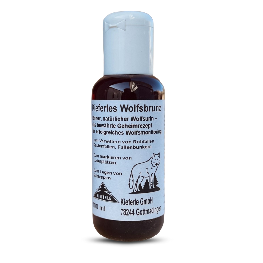 Kieferle’s Wolfsbrunz to czysty, naturalny mocz wilka o bardzo intensywnym, charakterystycznym zapachu drapieżnika. Preparat został opracowany jako profesjonalny środek do monitoringu i obserwacji wilków, a jednocześnie doskonale sprawdza się jako naturalny odstraszacz zwierzyny leśnej (sarna, jeleń, dzik itp.), symulując obecność wilka w terenie.